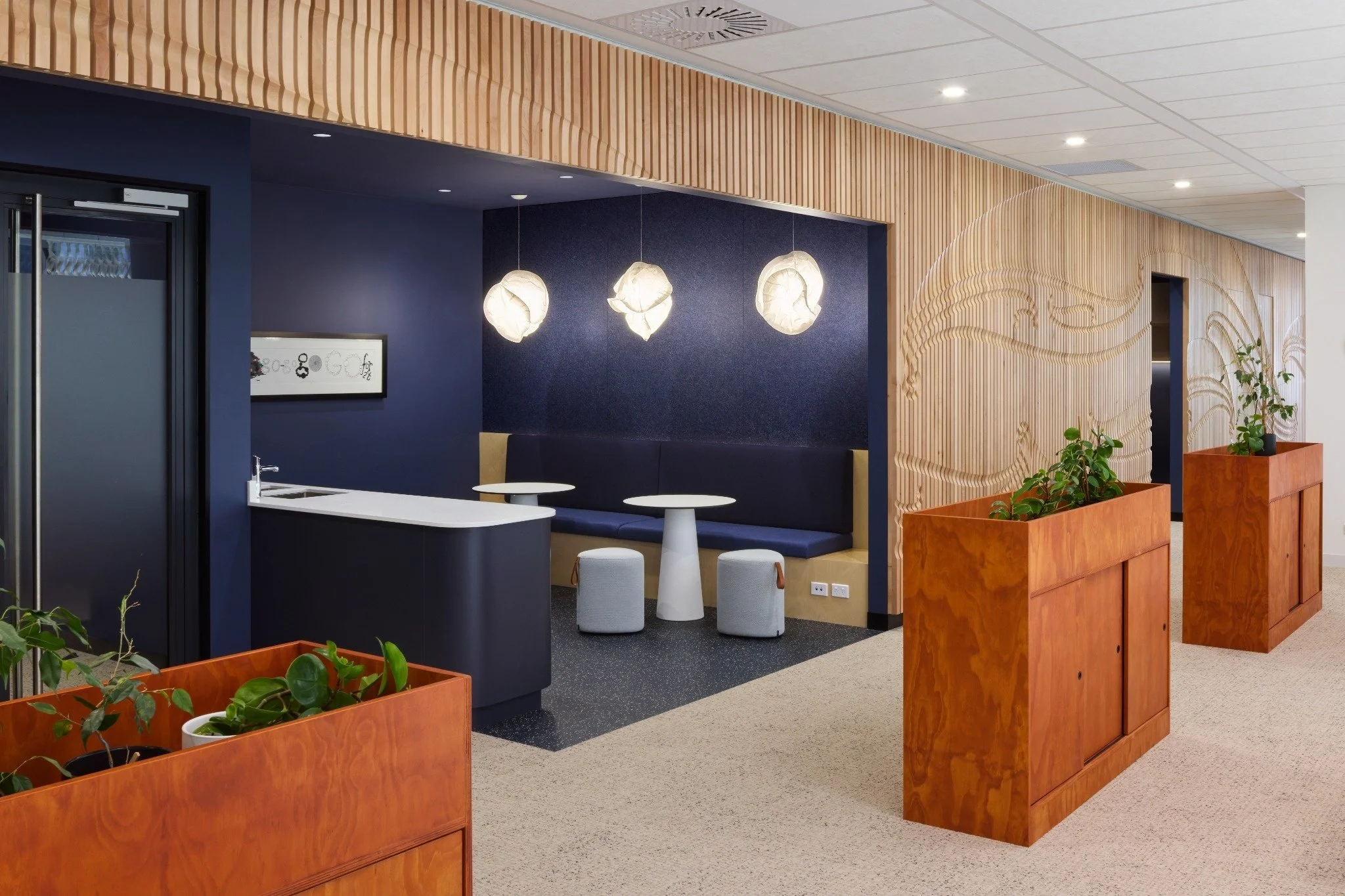 The project incorporated a mix of open-plan workspaces, enclosed offices, and a dedicated staff breakout area. A key feature of the fit-out was a large timber wall integrating Māori design elements, reflecting the local culture of Aotearoa New Zealand and providing a strong sense of place within the workspace.